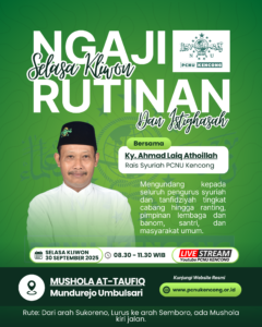 Istighosah HSN 2025 dan Harlah ke-27 UAS: Refleksi Spirit Santri untuk Negeri Ratusan Santri Meriahkan Kirab Lampion HSN 2025 di Alun-Alun Puger Santri Pemimpin Santri, Harapan Baru dari Bupati Jember Gus Fawait Bebrayan Agung: LESBUMI PCNU Kencong Gelar Napak Tilas dan Nyekar Muassis dalam Rangka Hari Santri Nasional 2025 Pesantren Adalah Pondasi Moral Bangsa, Habituasi Agar Tidak Antikritik Kick Off Hari Santri Nasional 2025 dan Harlah ke-27 UAS Kencong: Momentum Refleksi dan Pengabdian